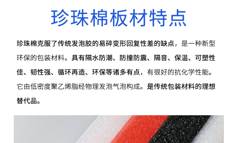 成都市美鑫包裝材料有限公司 成立于2011年,公司位于四川省成都市新津工業(yè)園,是一家新型的綜合性的包裝材料公司,產(chǎn)品深受新老客戶的好評。公司******于不斷提升EPE珍珠棉的生產(chǎn)技術(shù)和產(chǎn)品創(chuàng)新應用技術(shù),逐步建立了嚴格的可視化管理制度和靈活的經(jīng)營體制,不斷提升企業(yè)競爭力,公司產(chǎn)品只要分為四大類:塑料制品系列(epe塑料、塑料包裝材料、epe發(fā)泡、異形包裝等)。用于家具包裝,設(shè)備包裝、地板彩印鞋材和機械等各種電腦異形包裝材料。